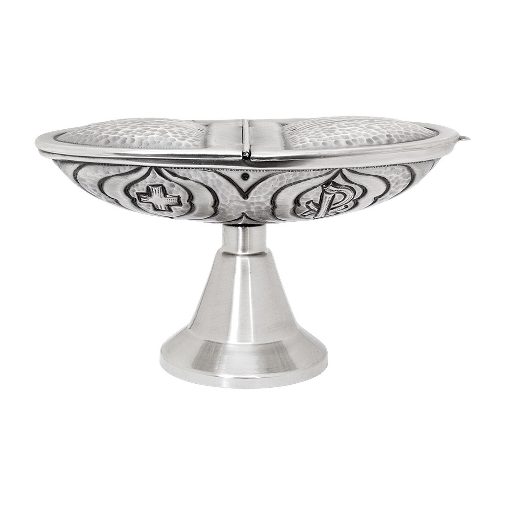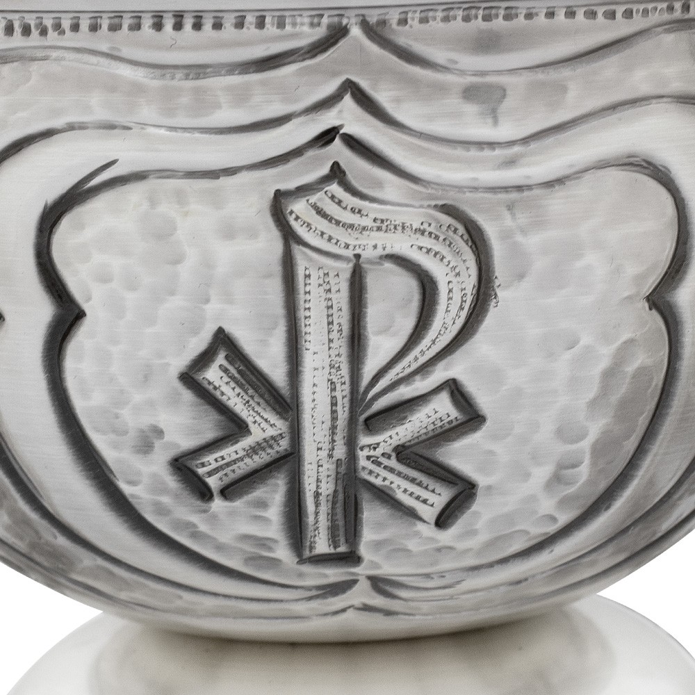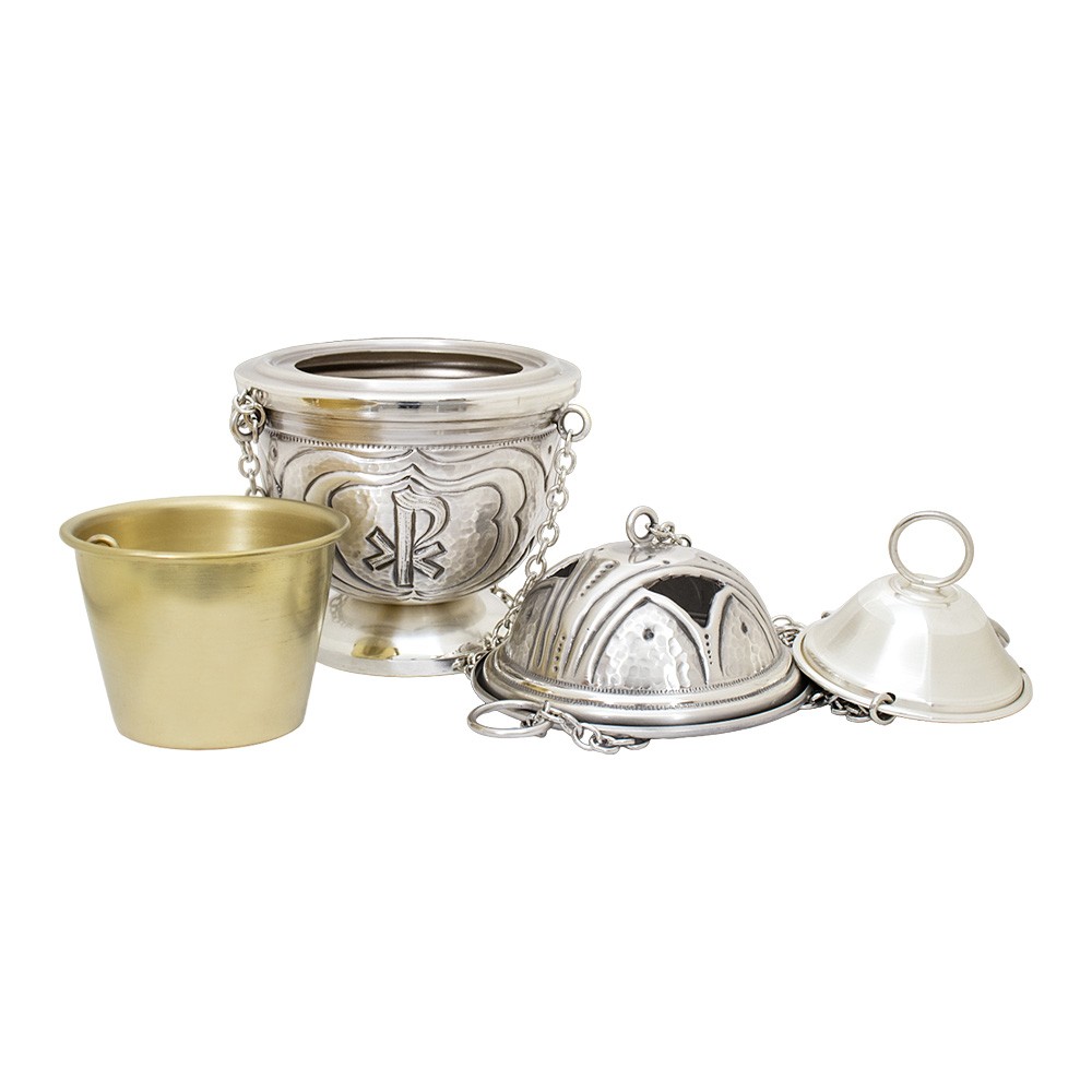 Turibolo con navetta cesellati con simboli JHS, XP e Alfa e Omega.