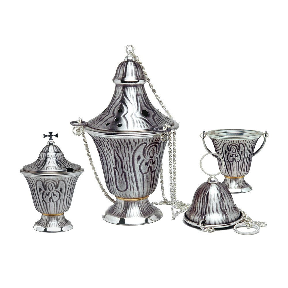 Turibolo e Navetta Cesellati con Simboli Liturgici