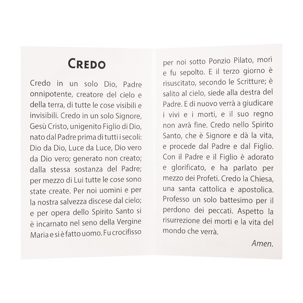 Cartoncino pieghevole (formato 15x10 cm) con preghiera del Credo.