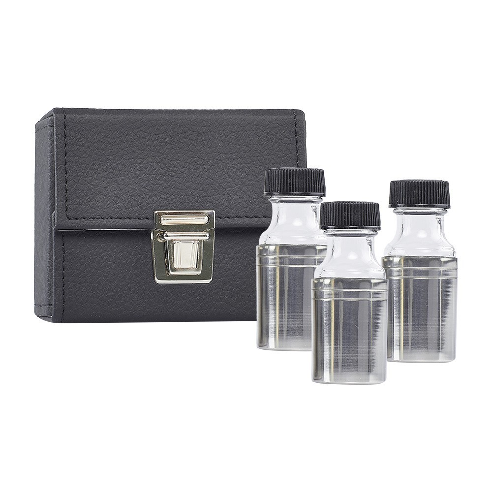 Set due vasetti per oli sacri con custodia in ecopelle.
