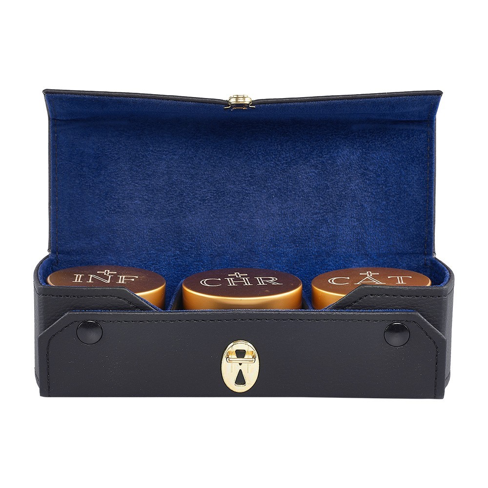 Astuccio in pelle completo di tre bottigliette da 30 ml per Oli Sacri.
