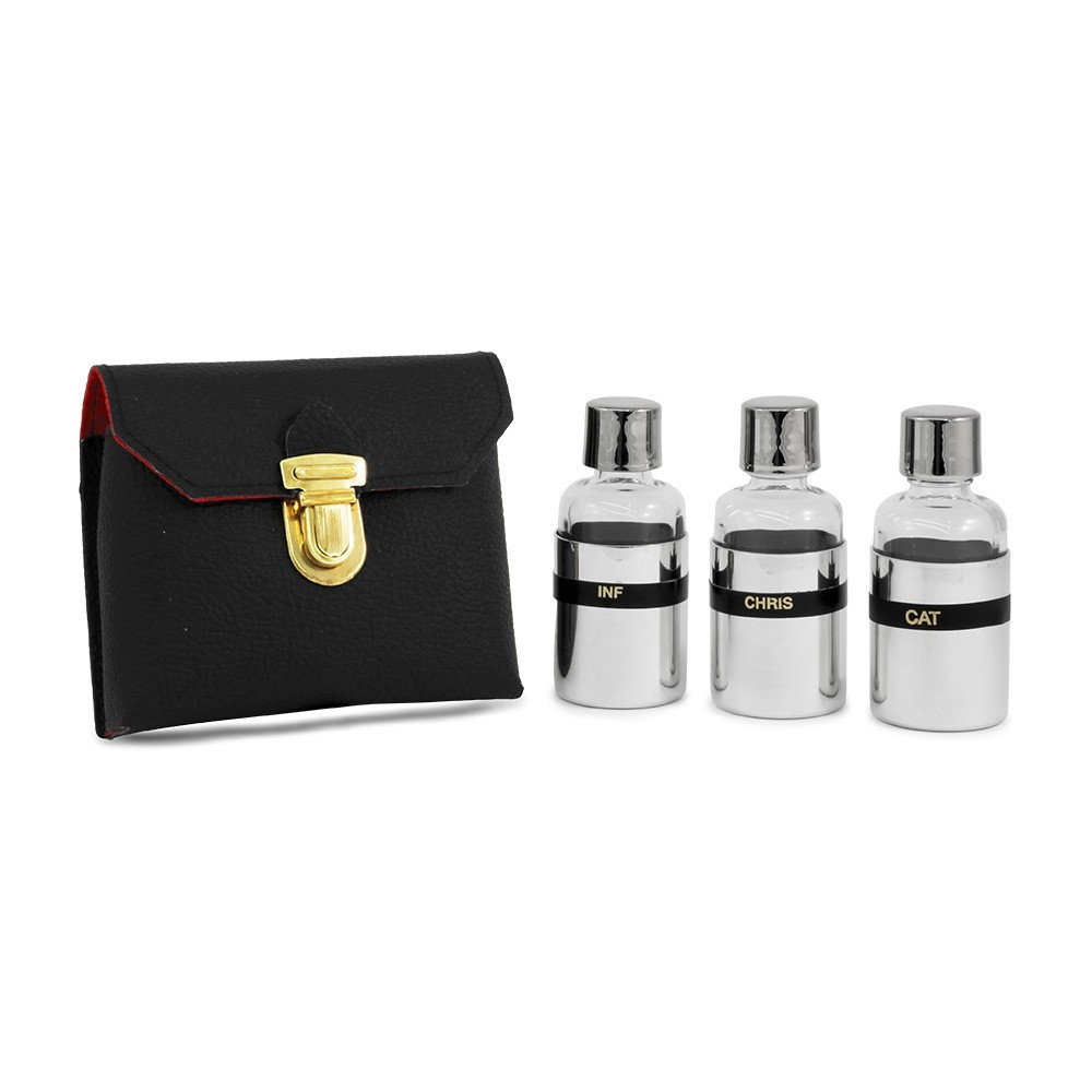Set due vasetti per oli sacri con custodia in ecopelle.