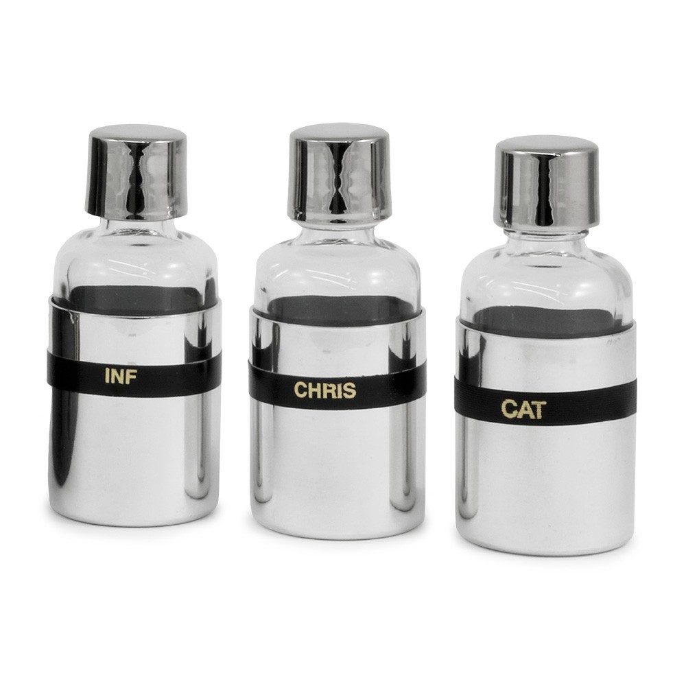 Confezione da tre vasetti per oli santi in argento da 5 cm.