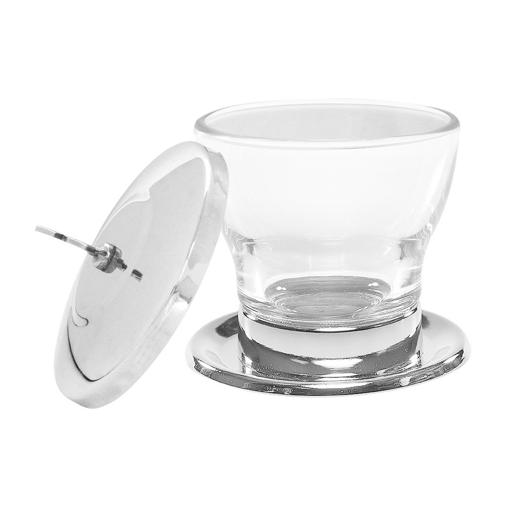 Il realizzato in vetro e metallo tono argento, completo di coperchio decorato è incisa l'iniziale CAT.