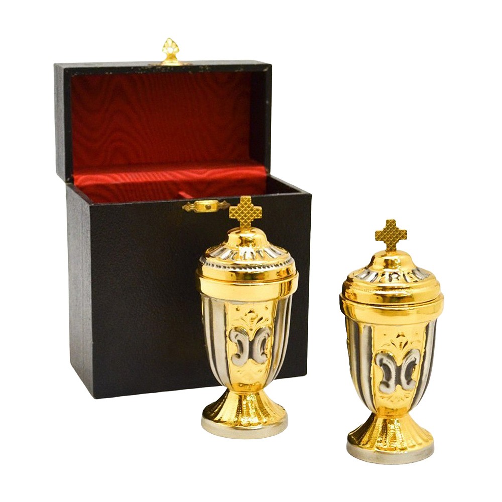 Vasetti olii Catecumeni e Sacro Crisma ottone.