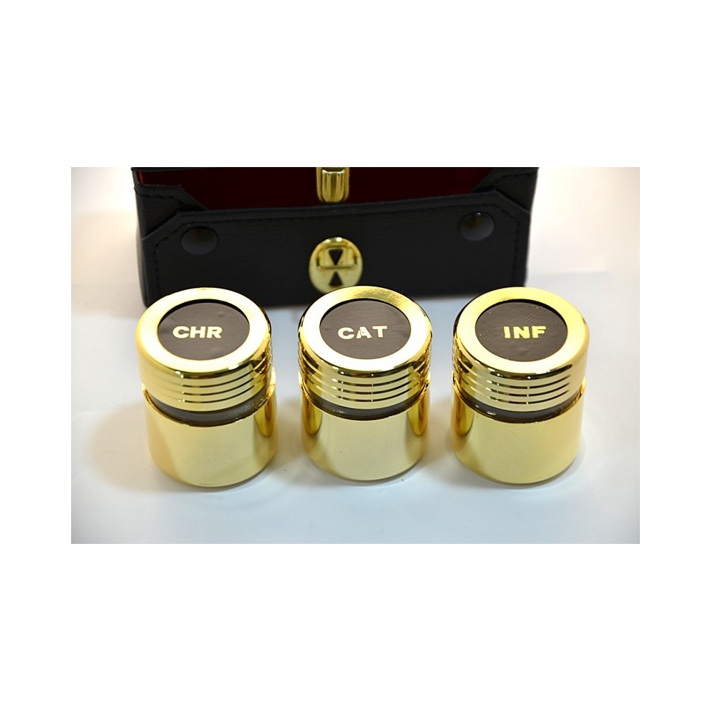 Consegna in 2 settimaneVasetto triplo in ottone oli santi INF, CHRIS e CAT.