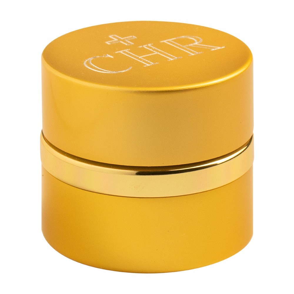 Tre vasetti per oli santi da 5 cm di diamento: INF, CAT e CHR.