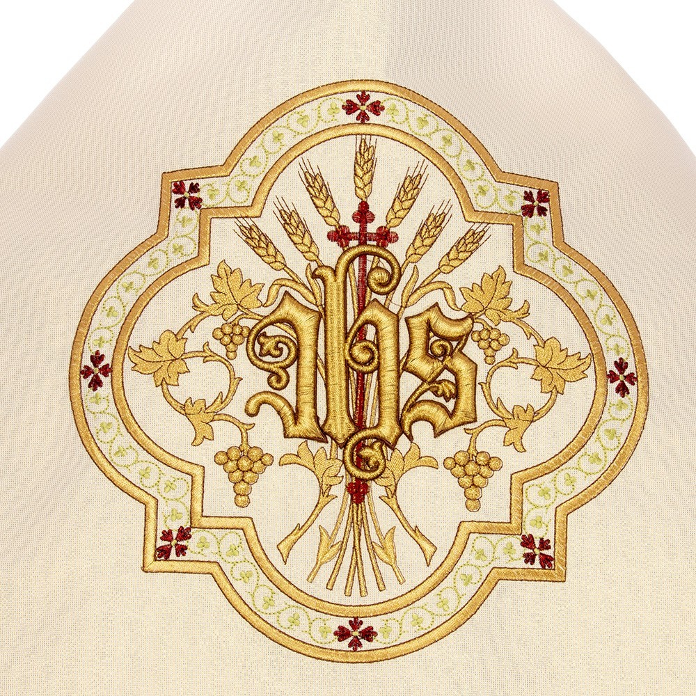 Paramento liturgico: Velo omerale con Ricamo IHS, spighe e fiori.
