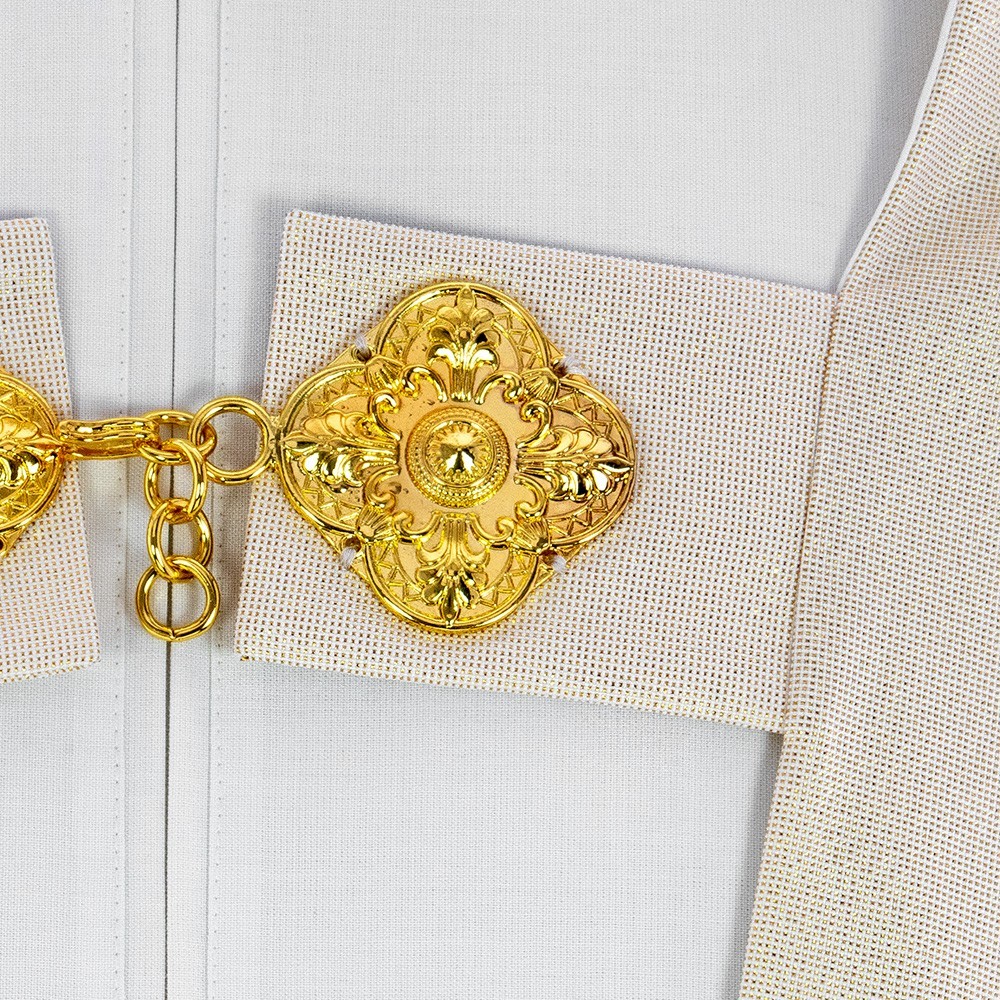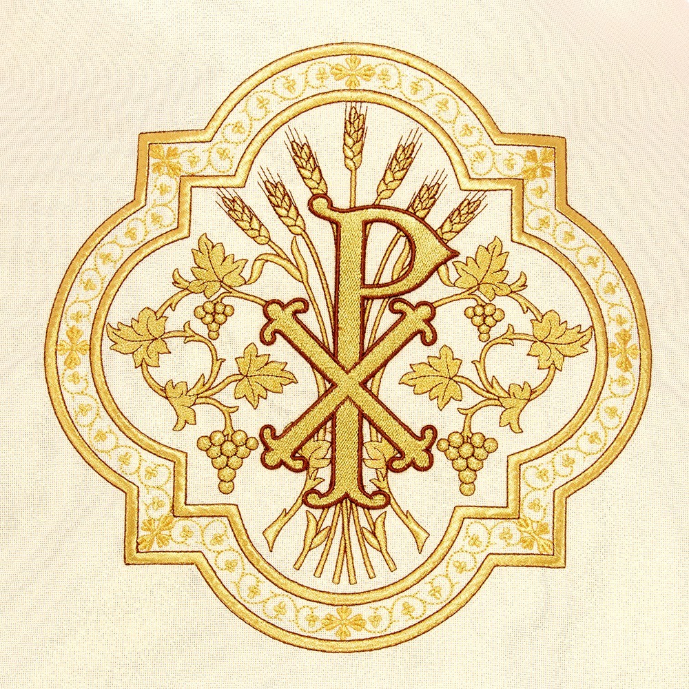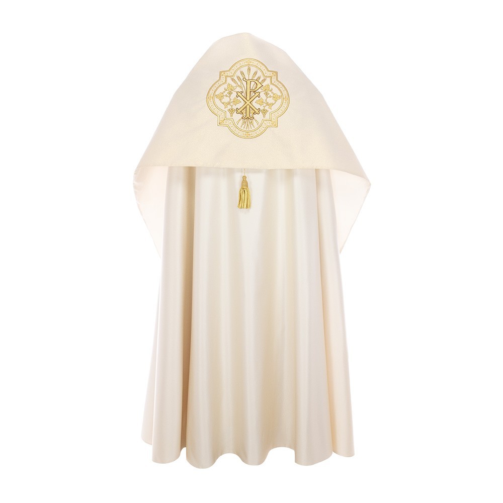 Il ricamo è eseguito a macchina con estrema precisione, i filati utilizzati e l'effetto laminato rendono questo paramento molto elegante e luminoso. Completo di ganci in ottone dorato e tasche foderate all'interno. Questo manto liturgico è prodotto e lavorato da un'azienda polacca, garantendo lavorazione e tessuti di buona qualità.