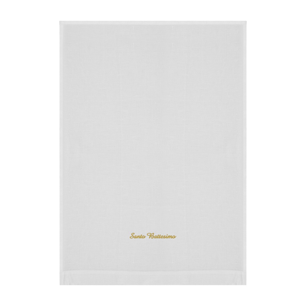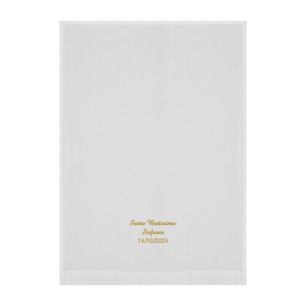 Tovaglietta o asciugamano per Battesimo realizzata in pregiato misto lino, ideale per celebrare con eleganza e semplicità questo sacramento speciale.