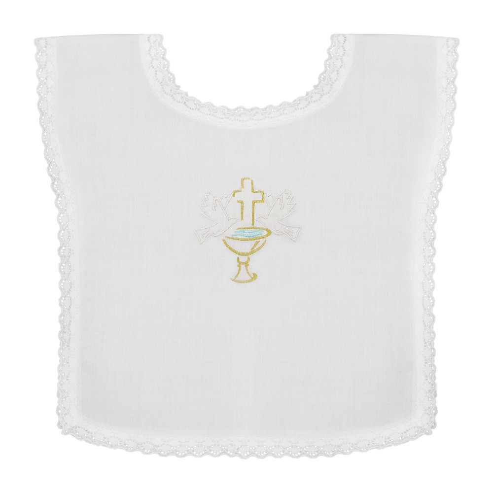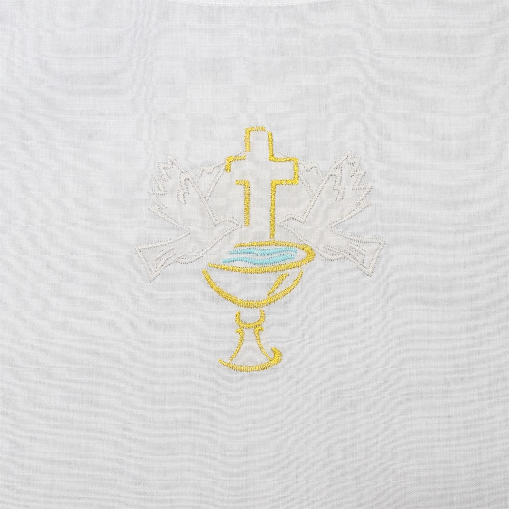 Vestina battesimale Myriam Arte Sacra pensata per celebrare questo sacramento con eleganza e significato. Realizzata in un morbido tessuto misto poliestere e cotone. Il ricamo centrale raffigura la Fonte Battesimale, simbolo del rito di purificazione e rinascita spirituale.