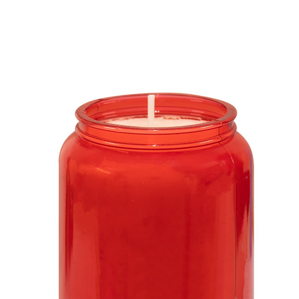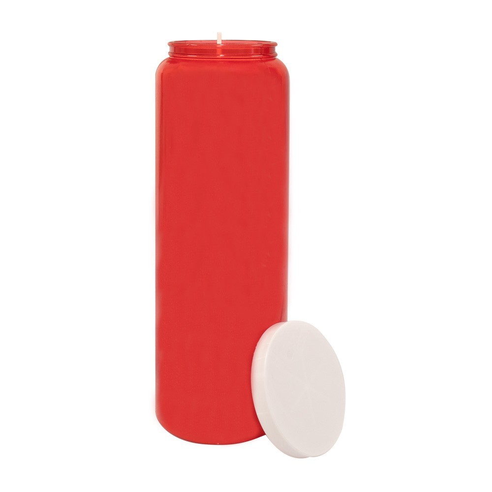 Il cero per il Santissimo ha una durata di 9 giorni ca ed è realizzato in purissima cera vegetale. Confezionato in comodo contenitore in PVC rosso che raccoglie eventuali residui di cera, adatto sia per le funzioni liturgiche che per ambienti domestici.