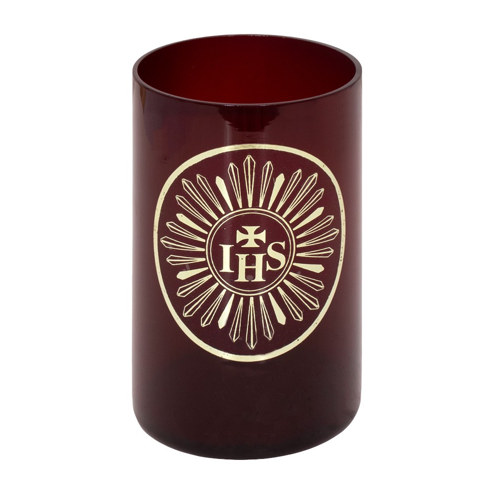 Bicchiere portacero per Santissimo realizzato in vetro rosso con adesivo applicabile. Durata 4 giorni.