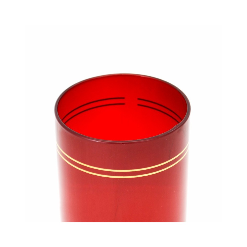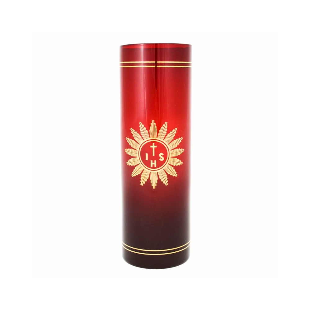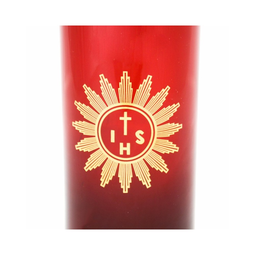 Bicchiere in vetro rosso per il Cero che dura una settimana che si pone sull'Altare davanti al Santissimo Tabernacolo.