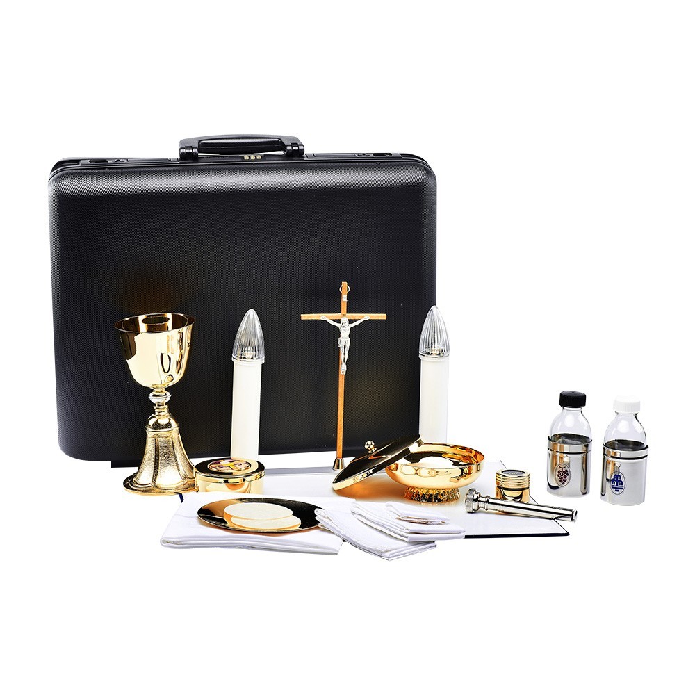 Portaviatico con interno blu per celebrazioni all'aperto. Questa valigetta contiene tutto il necessario per la celebrazione. Dotata di una comoda maniglia superiore.
