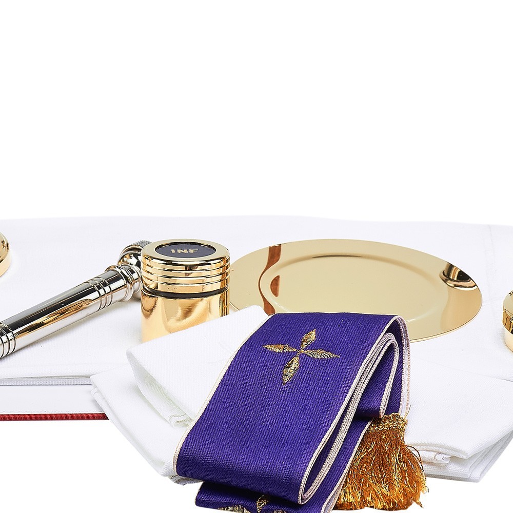 Zaino completo di accessori per celebrazioni liturgiche.