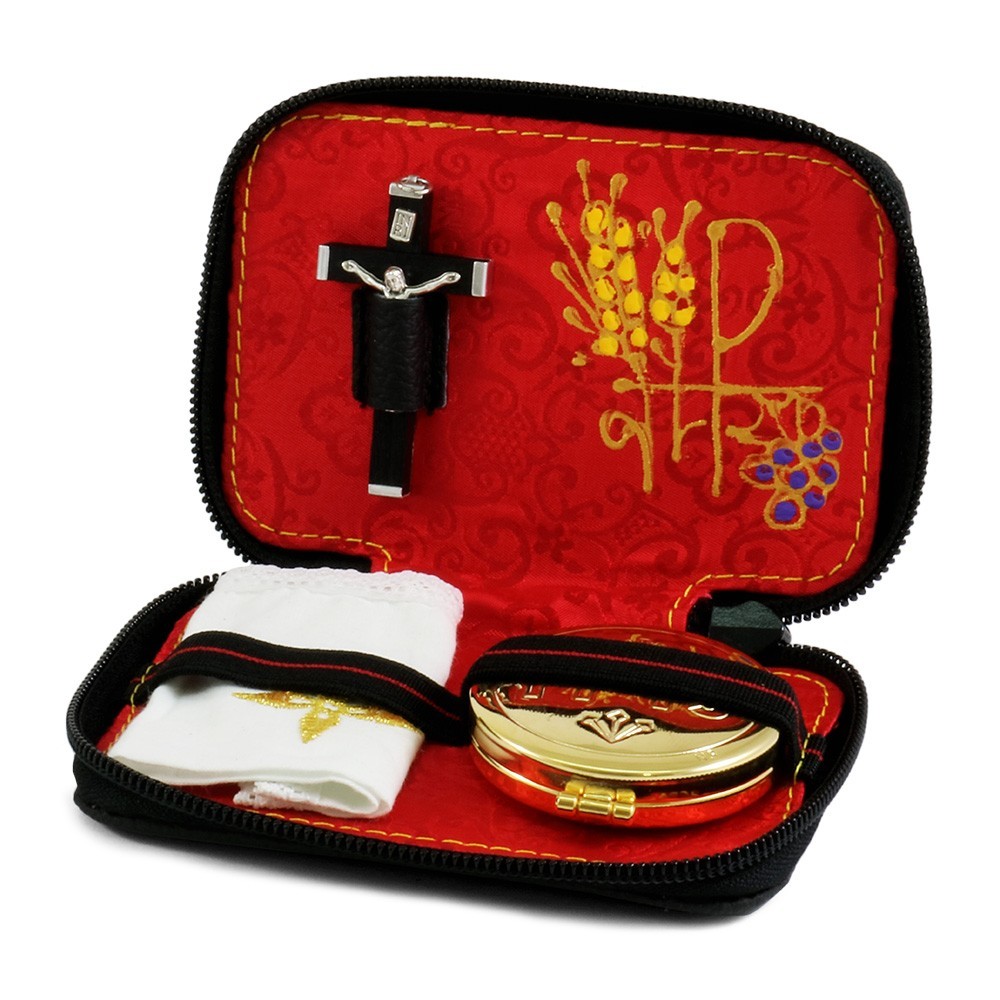 Completo astuccio per sacerdote in pelle e raso rosso.