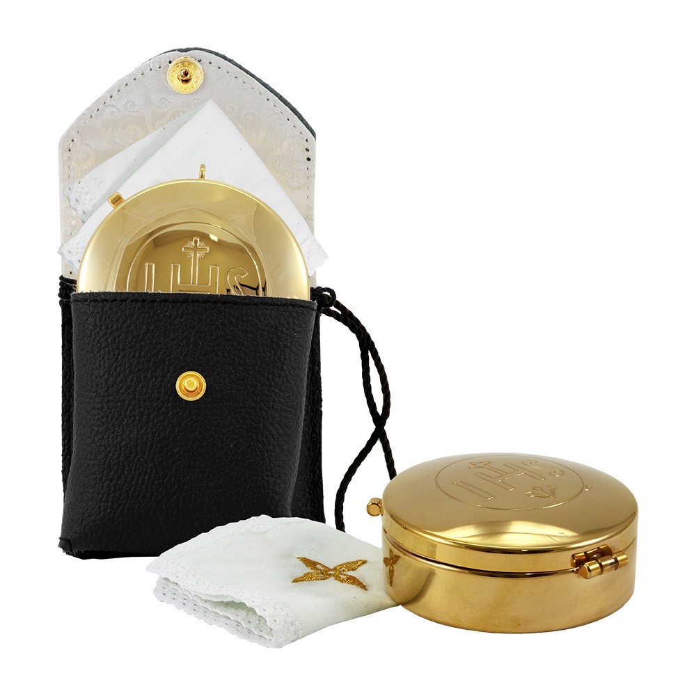 Astuccio portaviatico in raso con scatola portaostie, croce e purifichino.