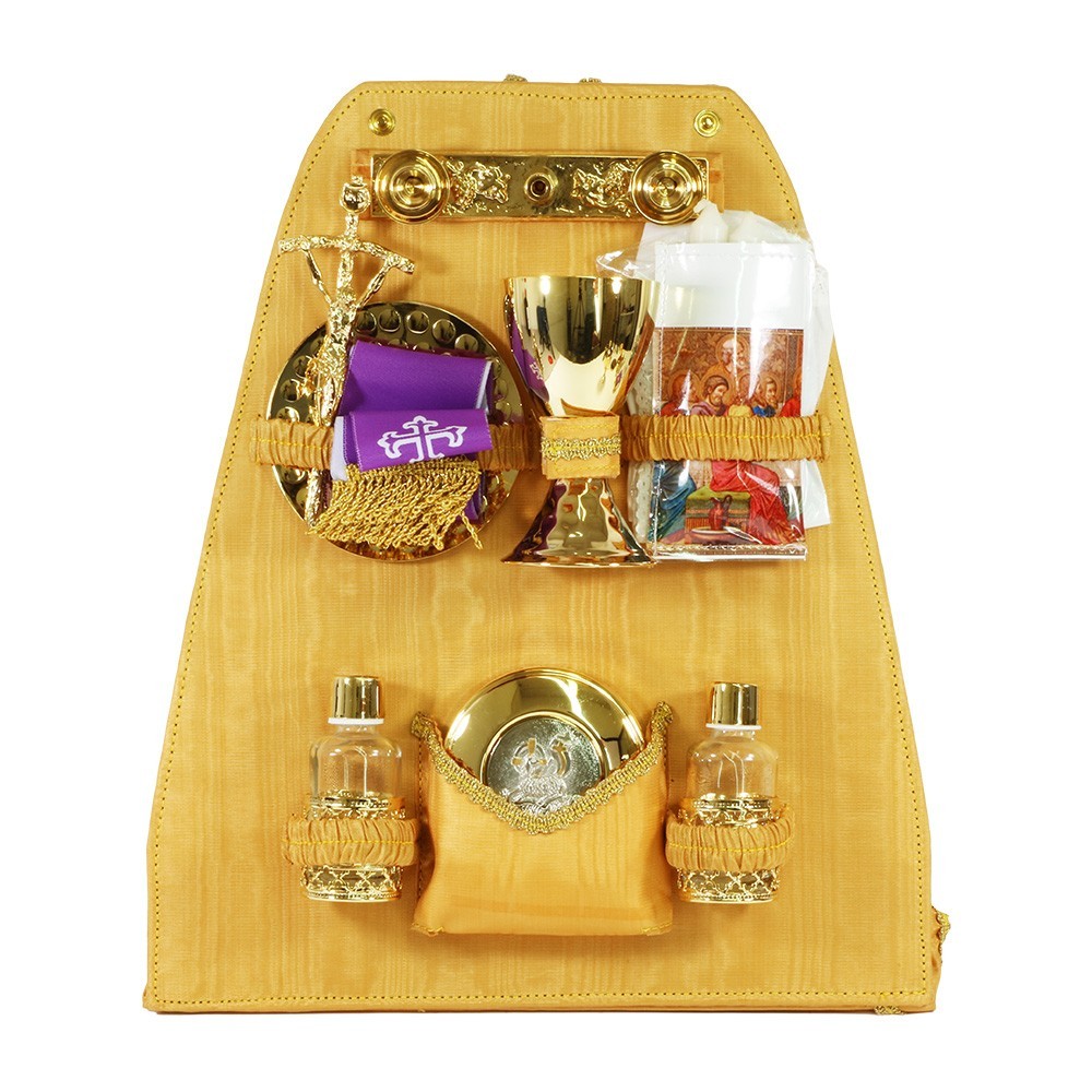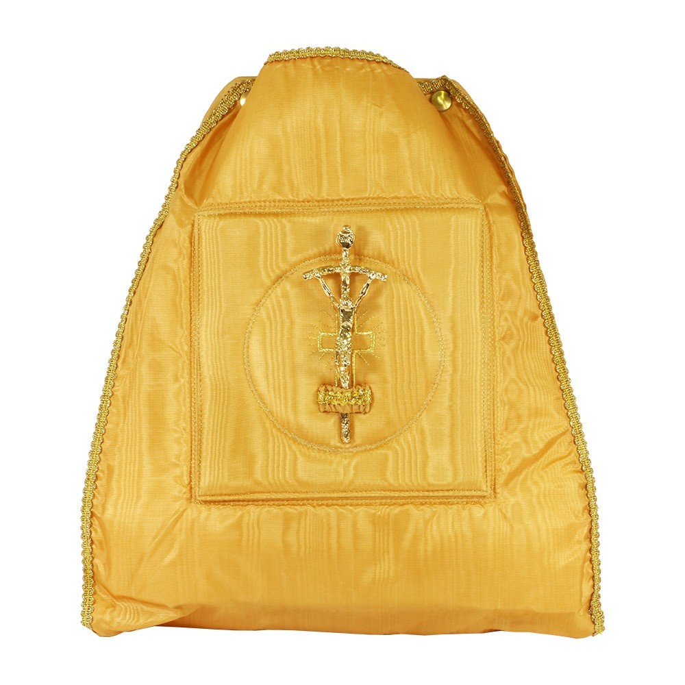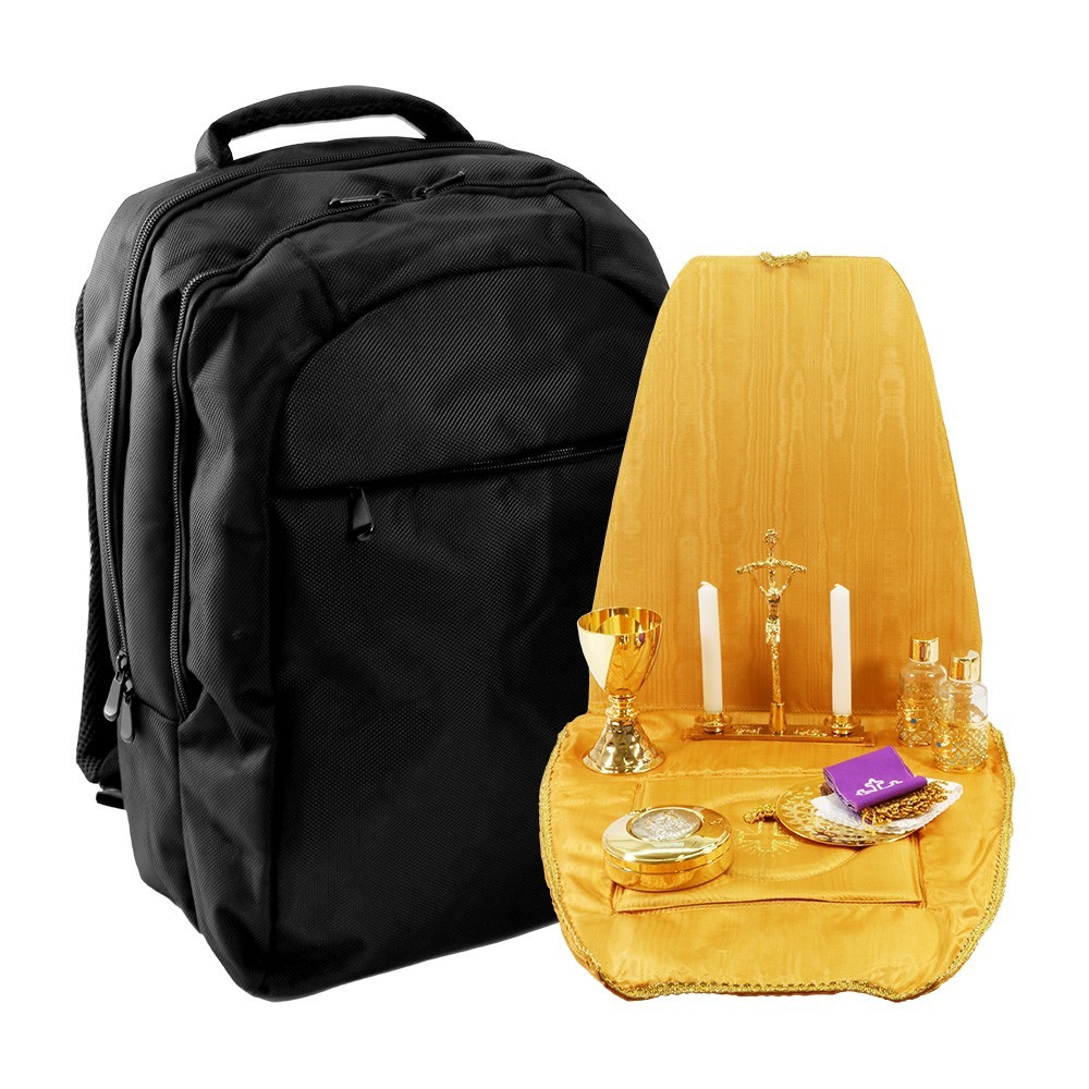 Al suo interno vi è un pannello porta oggetti estraibile, foderato in moirè arancione, completo di oggetti adatti per celebrazioni liturgiche. Lo zainetto misura 45x35x38 cm, eseguito rigorosamente in Italia, garantendo materiali e lavorazione di ottima qualità.