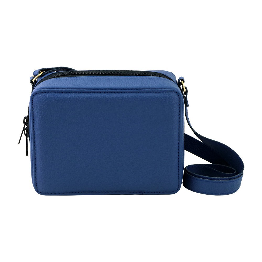 Borsello con tracolla in vera pelle per la celebrazione della Santa Messa. L'interno del borsello è completamente foderato in tessuto moirè blu.