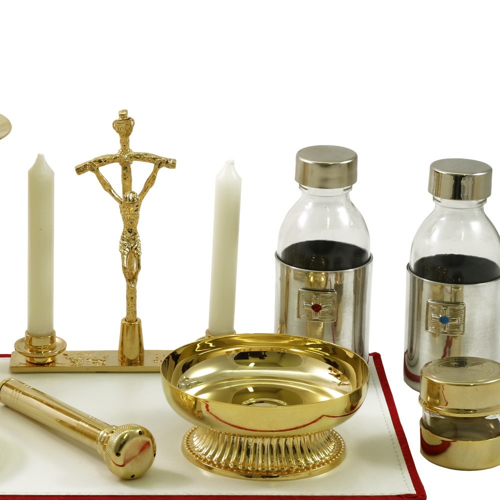 Zaino completo di accessori per celebrazioni liturgiche.