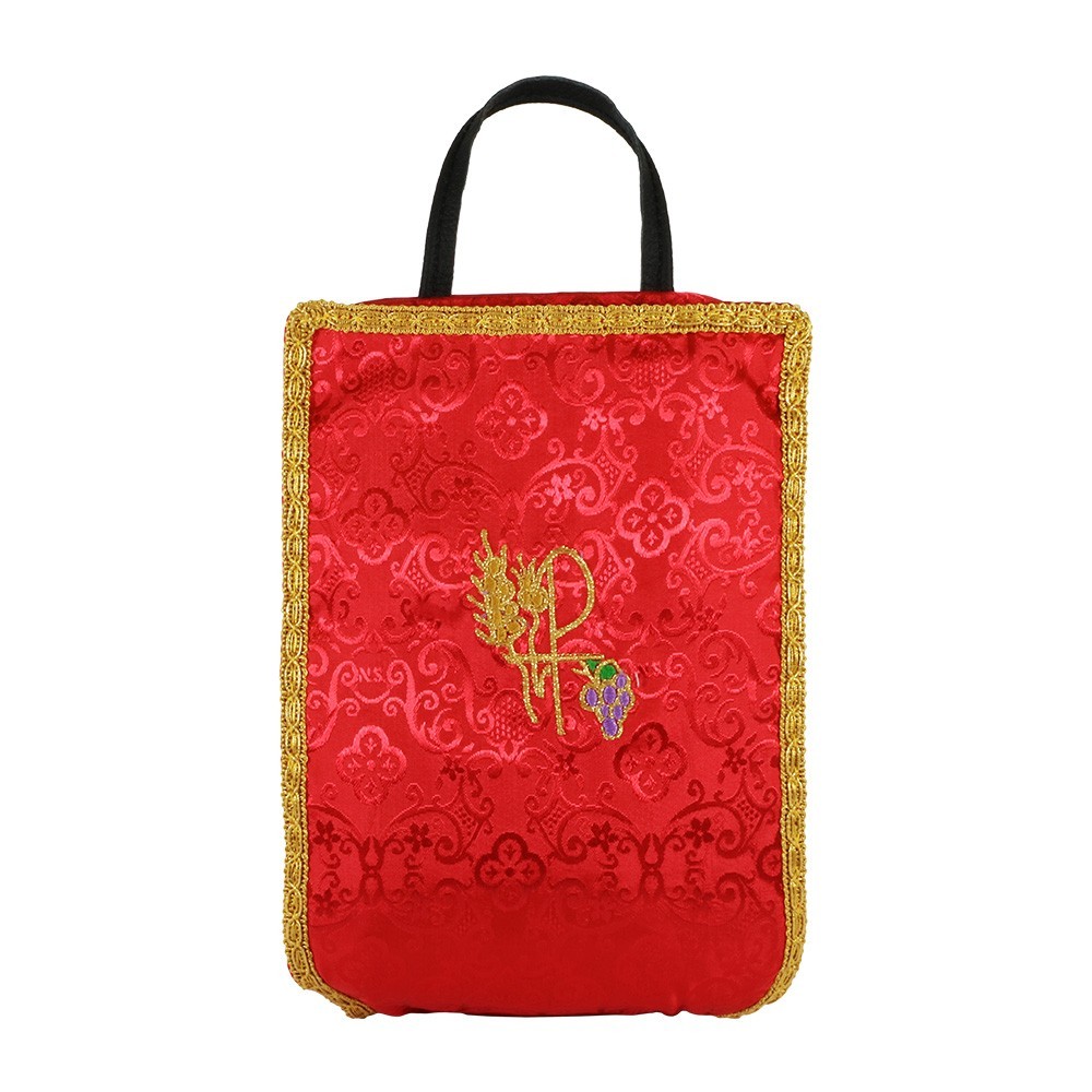 Praticissimo borsello con tracolla completo di tutto il necessario per la Santa Messa. Realizzato in tessuto tecnico con tracolla. Dotato di un comodo pannello portaaccessori estraibile foderato completamente in jacquard rosso.